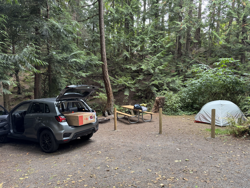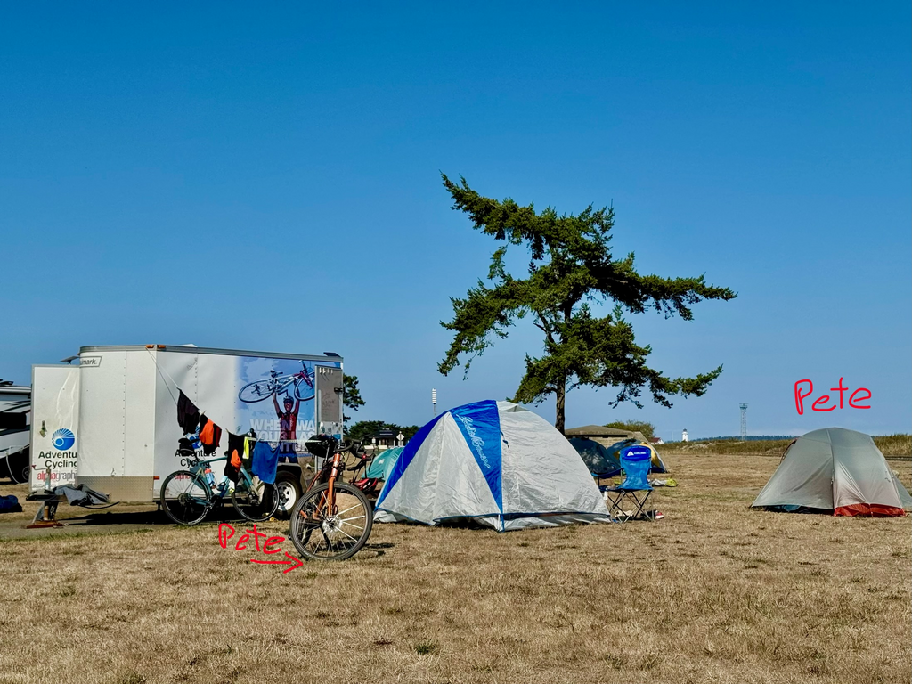 Finally we arrived campground, maybe the most beautiful and unique campground I've been to. Just boggles the mind that we started at the Peace Arch on the Canadian border and arrived here a couple weeks later, on bikes!