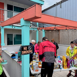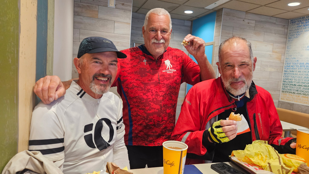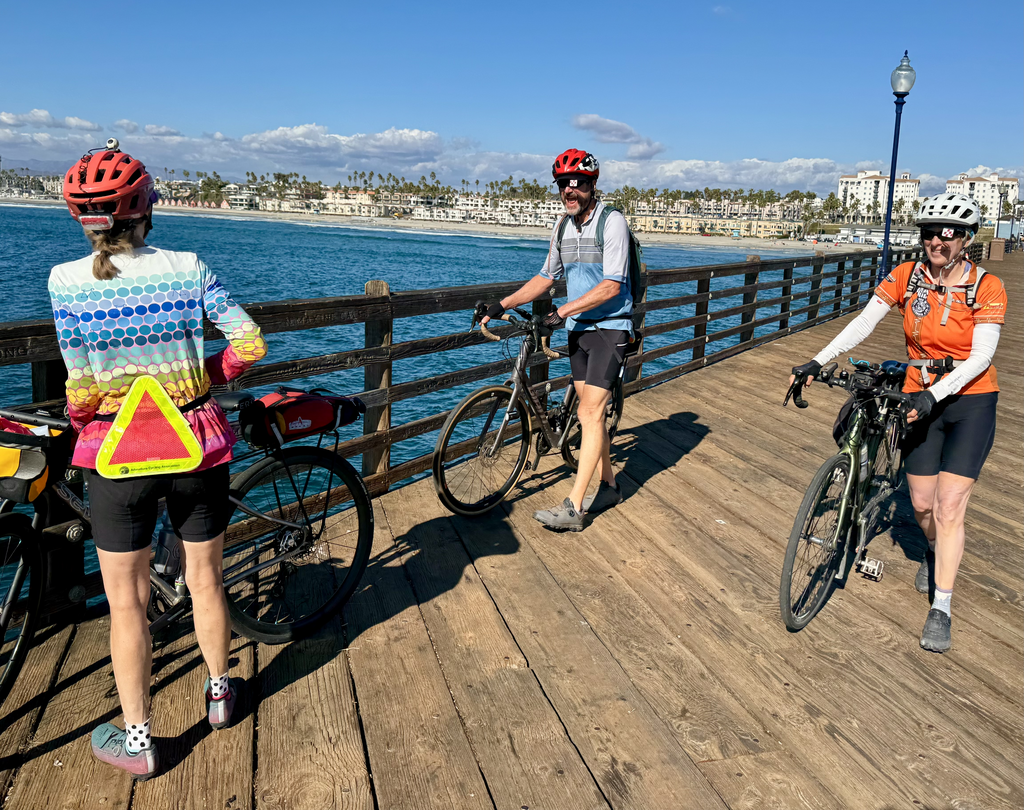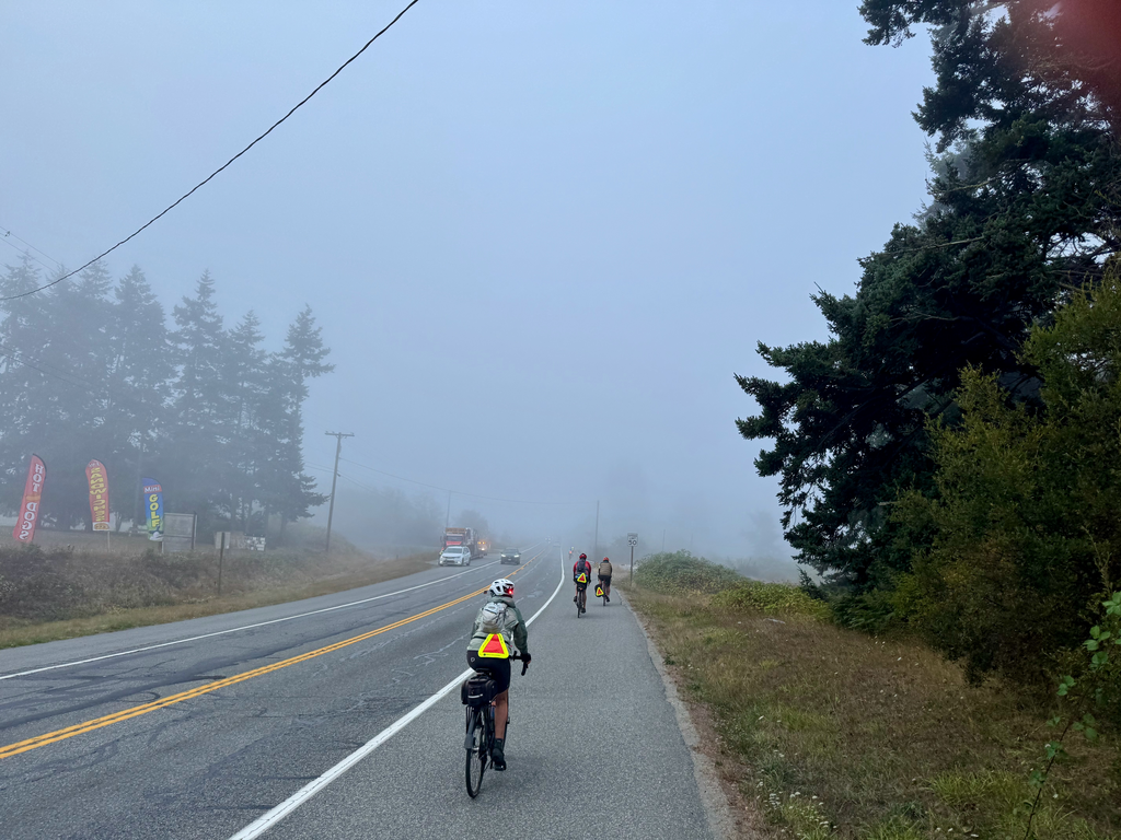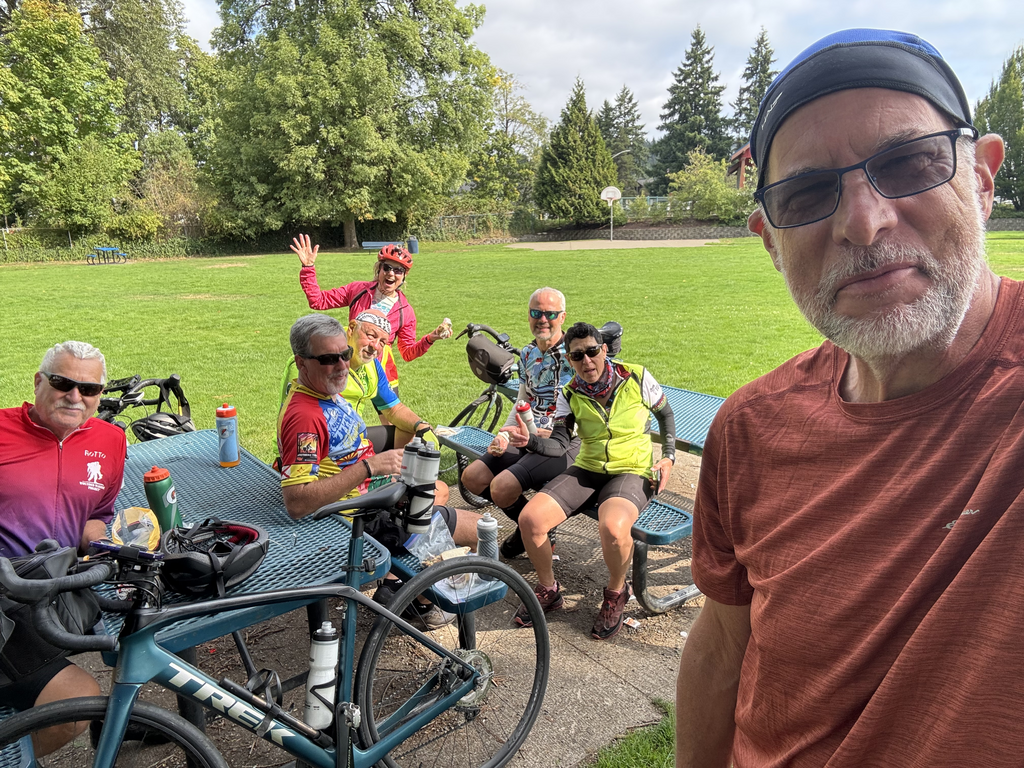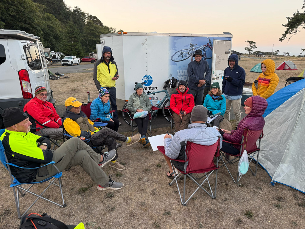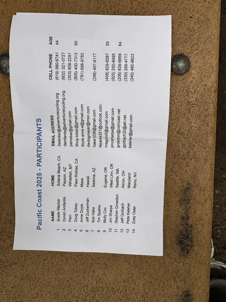 I'm thinking that the world of road-based touring is getting smaller by the day, at least here in the US. Of the 13 riders, I think only four (including me) have arrived not knowing any of the others. Even our leader, Brielle, knew at least three or four already. Much of this is by design, of course, they call up their buds and say let's go do a trip together. But it's actually more than than. One guy did a TDA (another tour group) ntrip in Korea and Japan with Stephane, a French guy that I briefly rode with on the Transam in 2023. Three of us were independently signed up for a TDA trip in Africa called cape to kill for fall 2026, before it was cancelled. Rosana biked with a woman in the Baltics this year who was also signed up for that same trip. None of the four of us knew each other! It get's worse: Stephane signed up to do this crazy TDA trip from Tuktoyaktuk to Panama City. The woman Rosana met in Estonia and Pam, one of the women on this pacific coast trip, have both signed up to the last part of Stephane's trip: Mexico City down to Panama City.