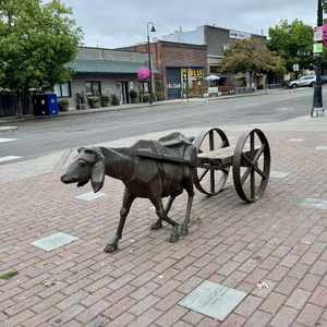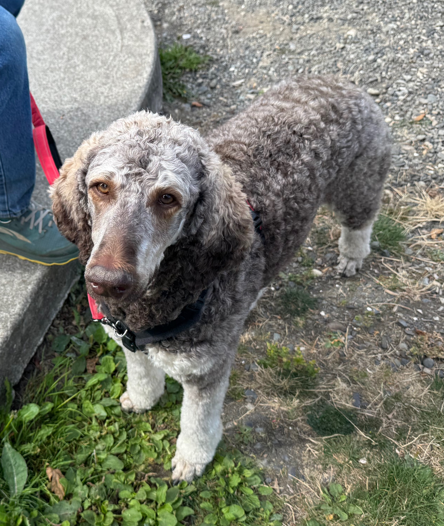 101 here is a four-lane divided highway, fast traffic, but usually decent shoulders. We bumped on and off several times before arriving in Fernwood, which might as well be called Pleasantville. Very cute, well-kept houses, store fronts, and cafes. There was a non-working phone booth. Hadley Gardens was a tiny park w/ cool giant doll houses, shaded walkways, hobbit holes, and a chocolate standard poodle named Fozzie, whose owner is a dead ringer for Catherine O'Hara. Fozzie barked at me until I removed my helmet after which he sat on my foot.