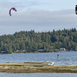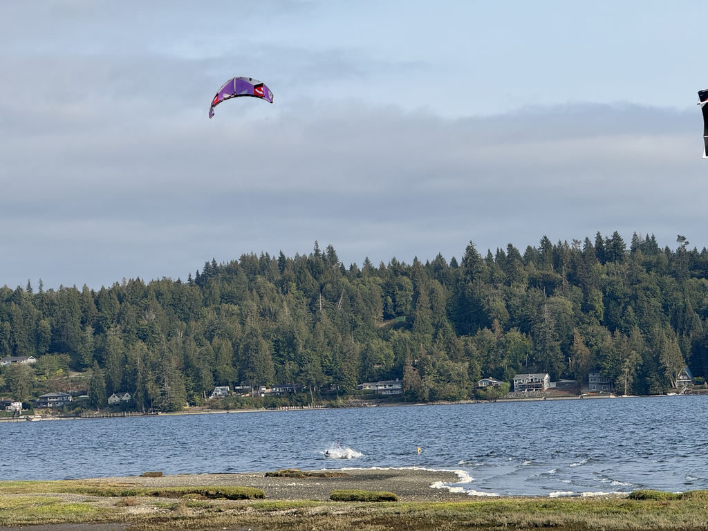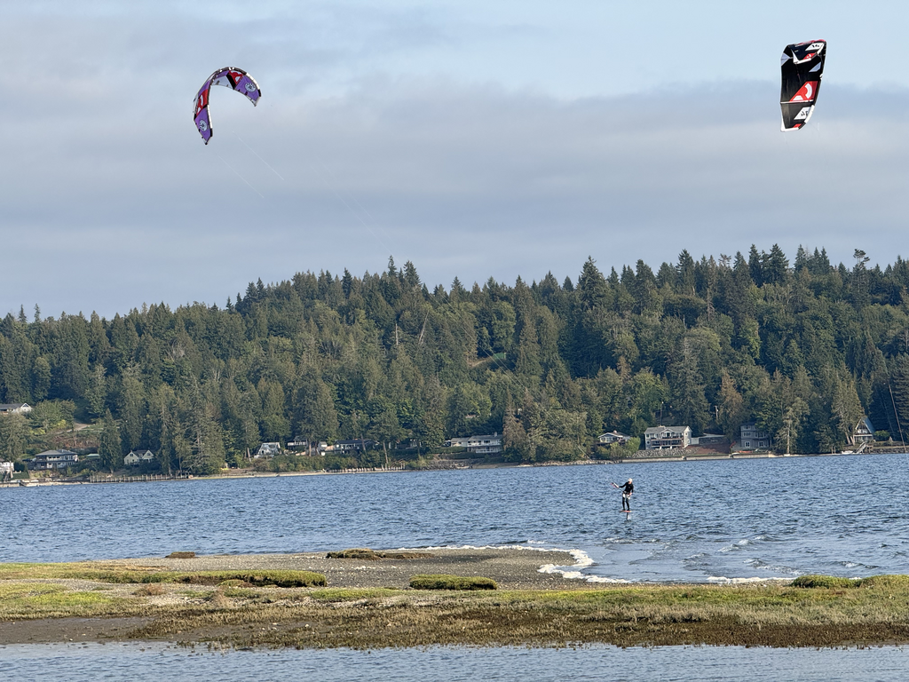 Then there was a lot of "eh?", and finally we arrived at Belfair State Park, which was fabulous. We were right on the beach, w/ front row seats for the bike-boarders (some of whom would actually get way up off the water via hydrofoils). At some point I'll have video, but you've probably seen this if you vacation in the south. I had not seen this at all.
