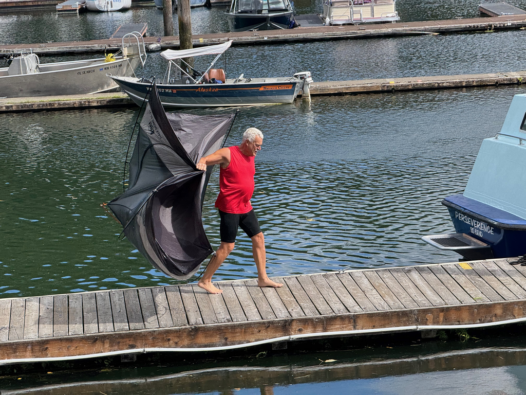 We stayed in a Marina, which was not great, but being near the water is always fun...unless you are Stephon, who let the wind take his tent for the second time on this tour. This time it went into the foul marina water and started heading out to see. Luckily, Tim ran down the next doc barefoot and was able to fish it out before it totally set sail.