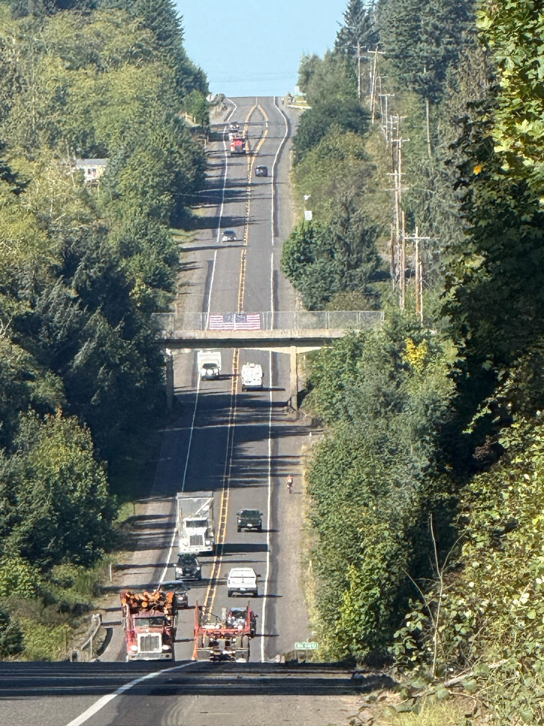 One of the issues w/ this route is a short, uphill tunnel where riders have to take up the lane and trust RVs to see the flashing yellow lights and your flashing 350-lumen rear blinkies. We had a couple riders who didn't trust the RVs and hugged the side of the road, which allowed the cars to just rip past in the tunnel. This was a mistake.