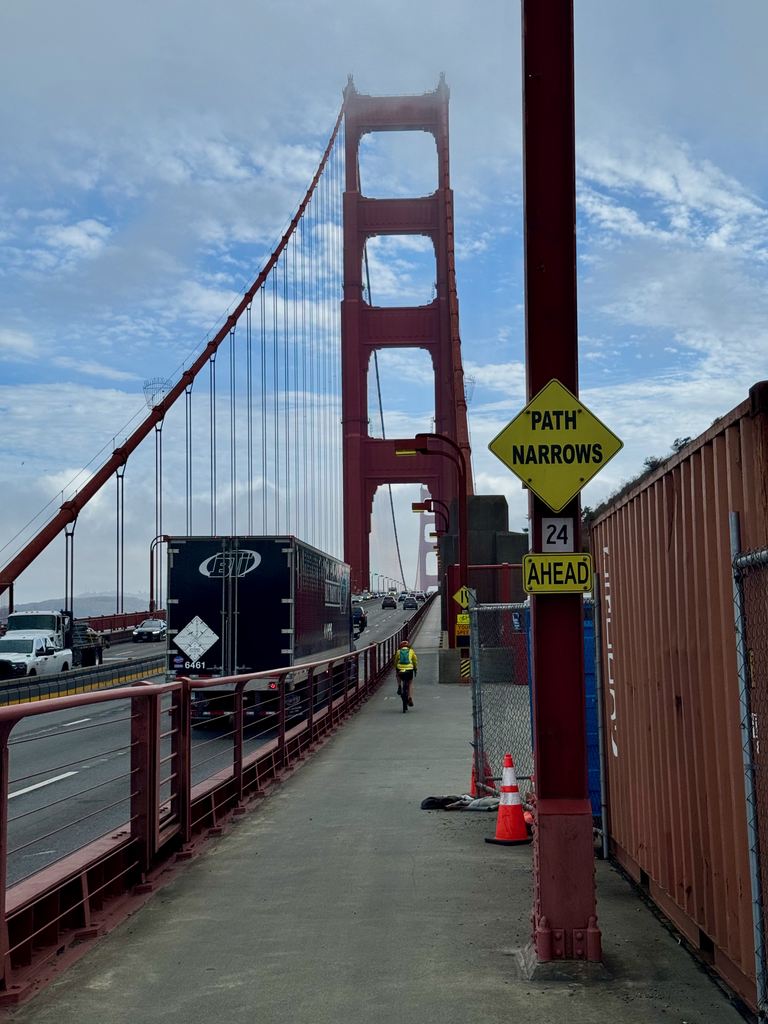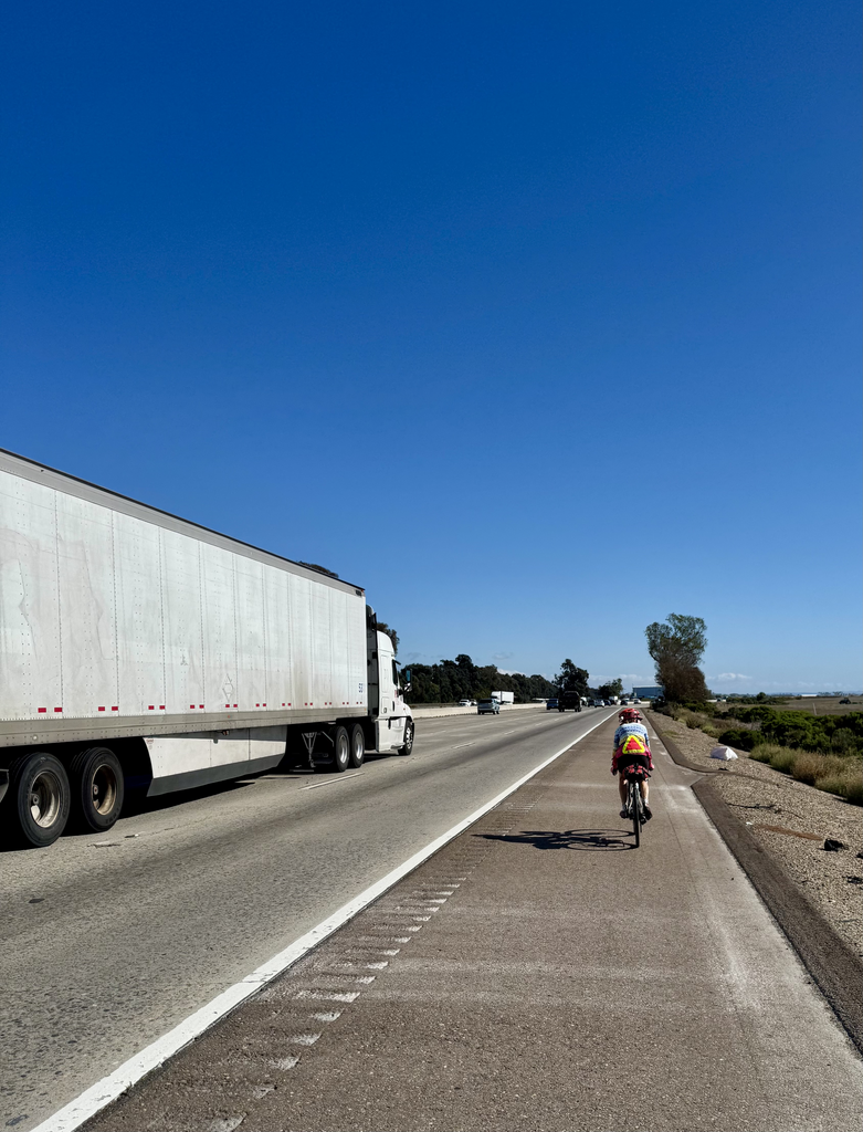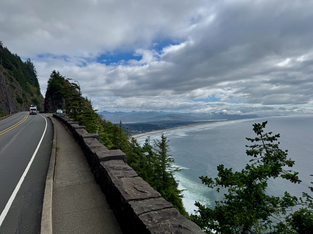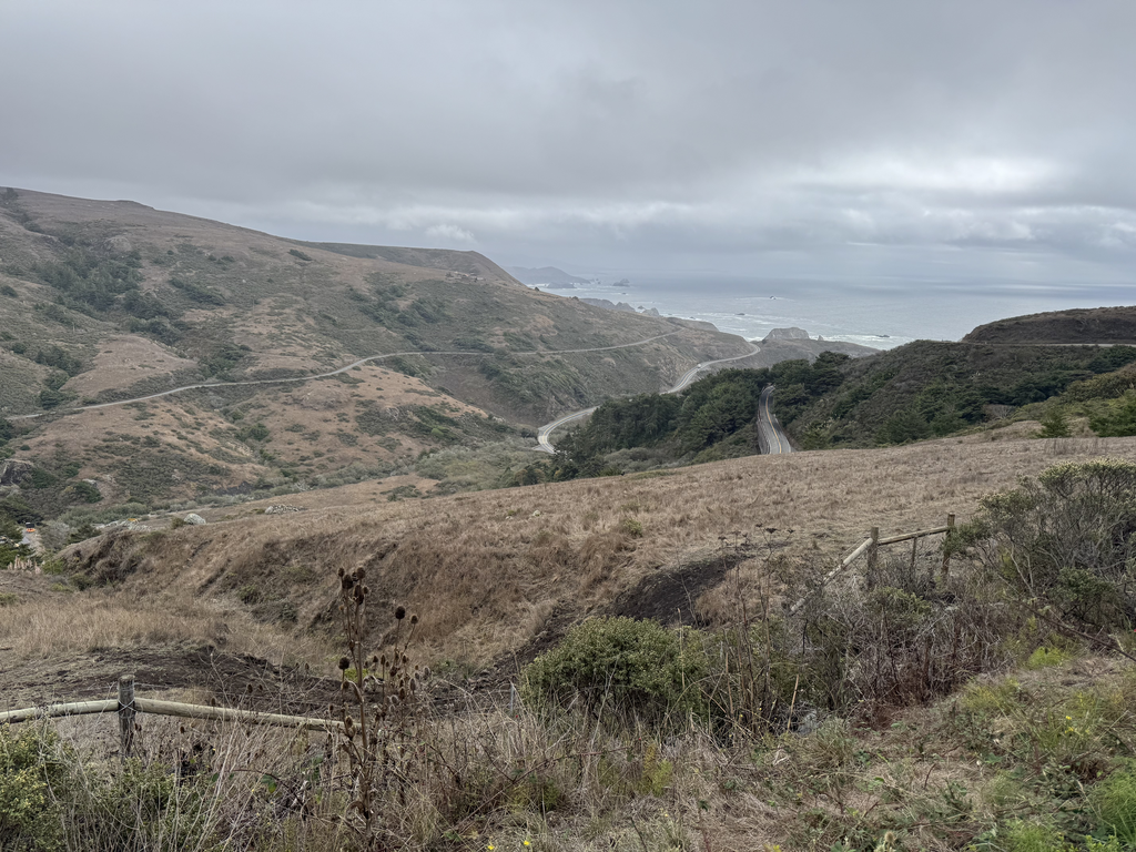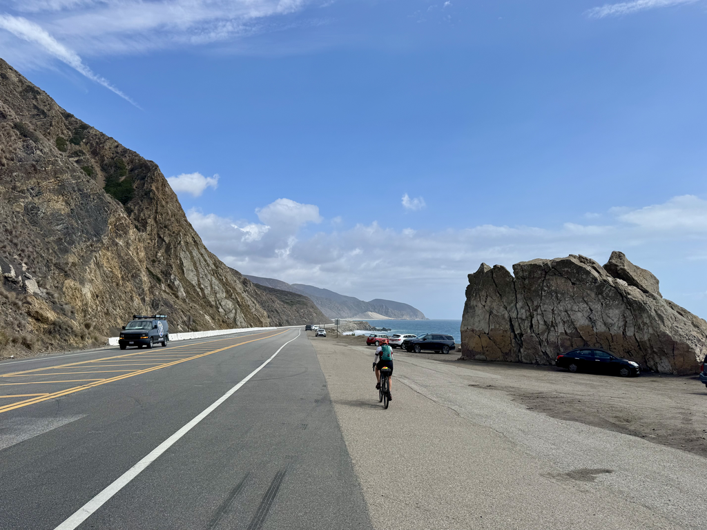 I will add that while the coast is almost uniformly gorgeous and many of the campgrounds wonderful, we deal daily w/ non-stop traffic, narrow or non-existent shoulders, and narrow bridges that must be crossed in the car lanes (riding in the sidewalk is rarely feasible). Comparing it to something like the TransAm is difficult because they are so different.