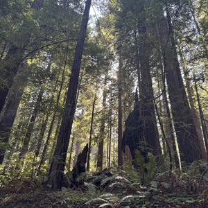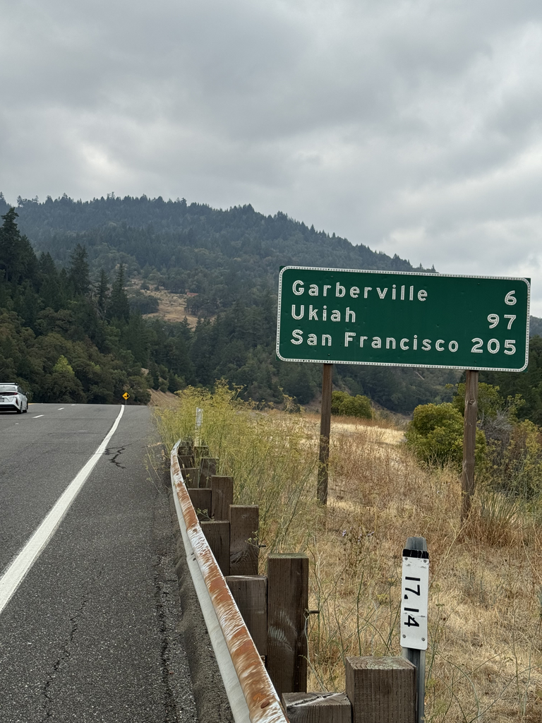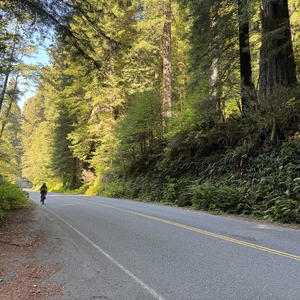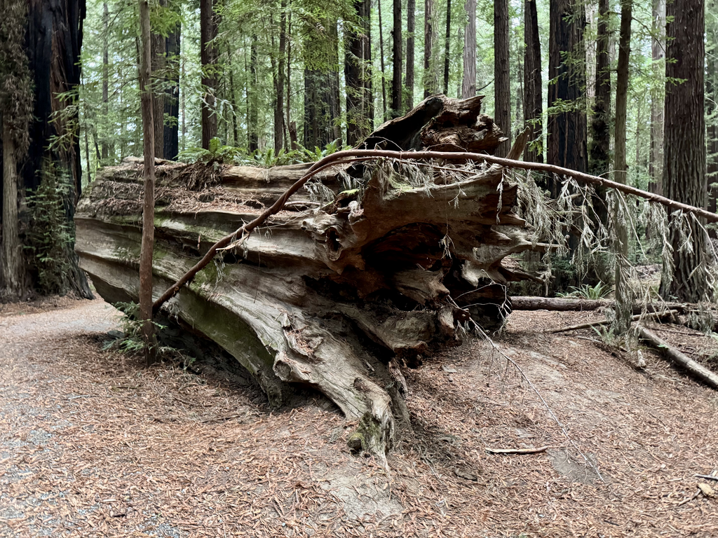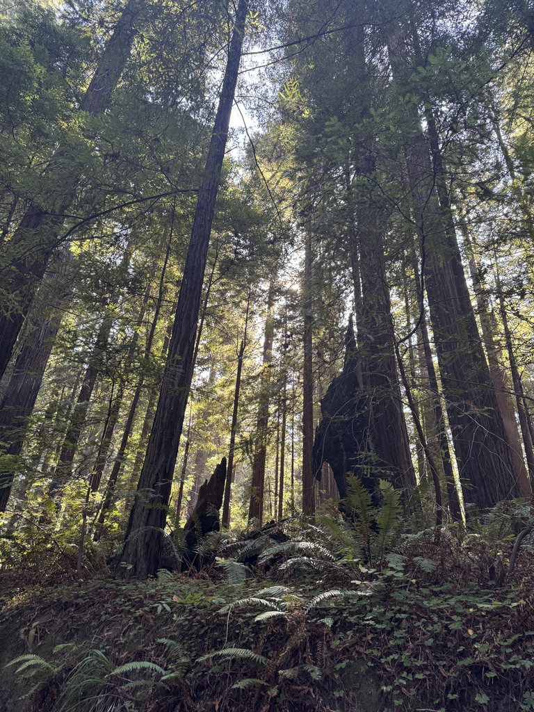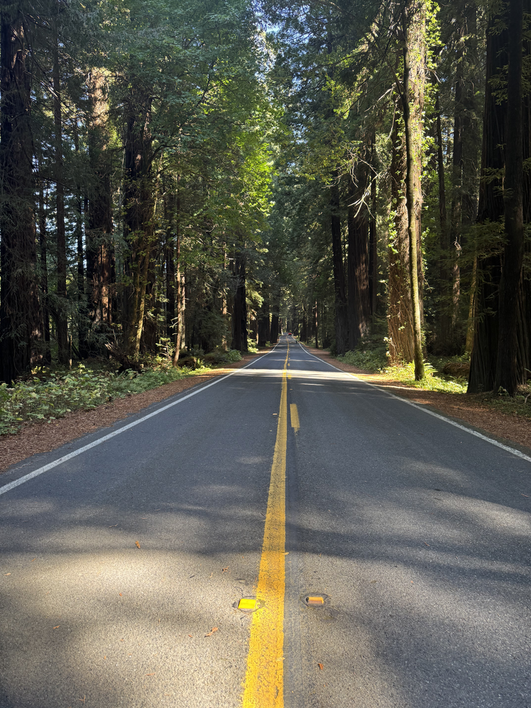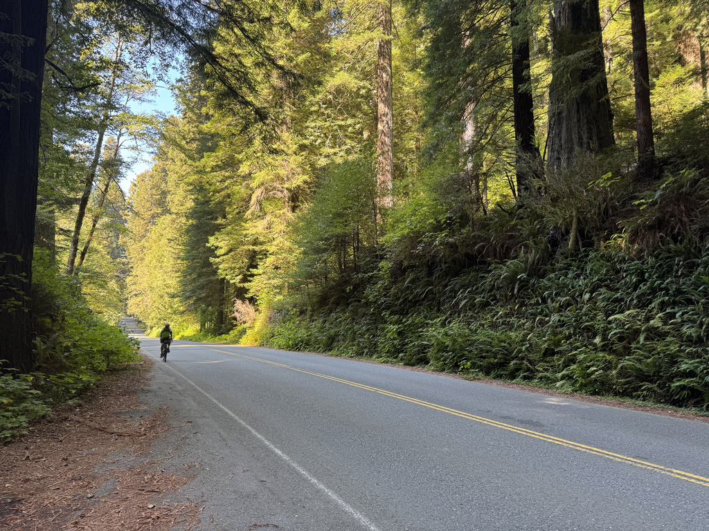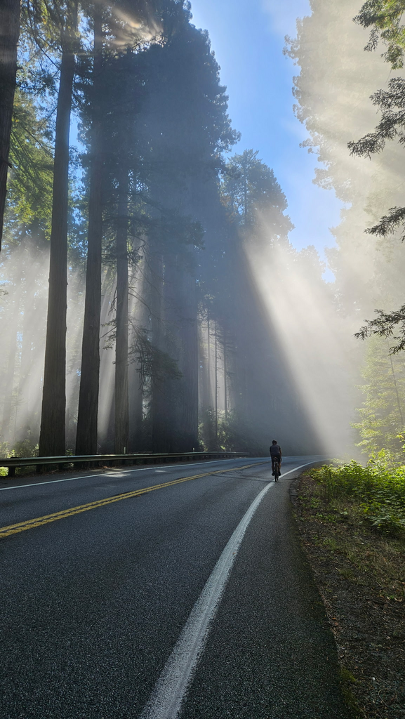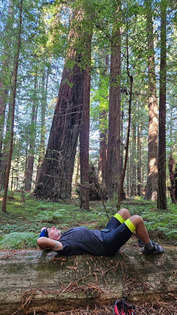 Once out of Fernwood, we climbed through bucolic countryside until we dropped into The Avenue of the Giants. We stopped at the first redwood grove we got to and just wandered for a bit. The contrast between the busy 101 highway and the absolute peace and quiet of the giant trees was crazy. I laid down on a fallen tree for about 10 minutes, just staring up through the surrounding trees. Forest bathing indeed.