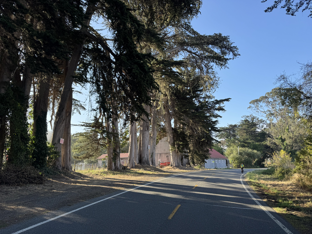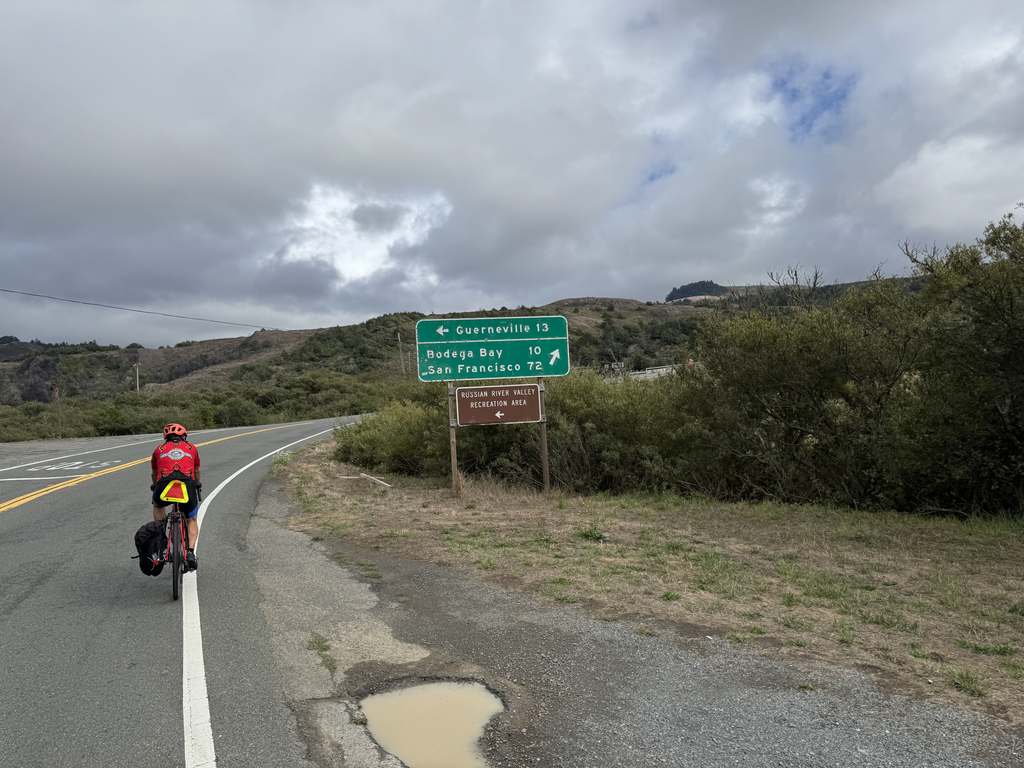 Tomorrow a rest day, then eight straight days of riding into SF, culminating in two days totally 143 miles and 9300 ft climbing.