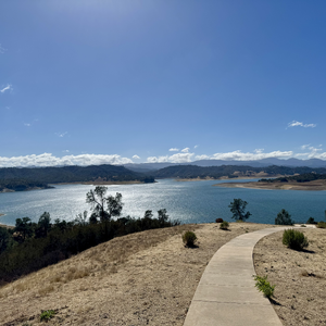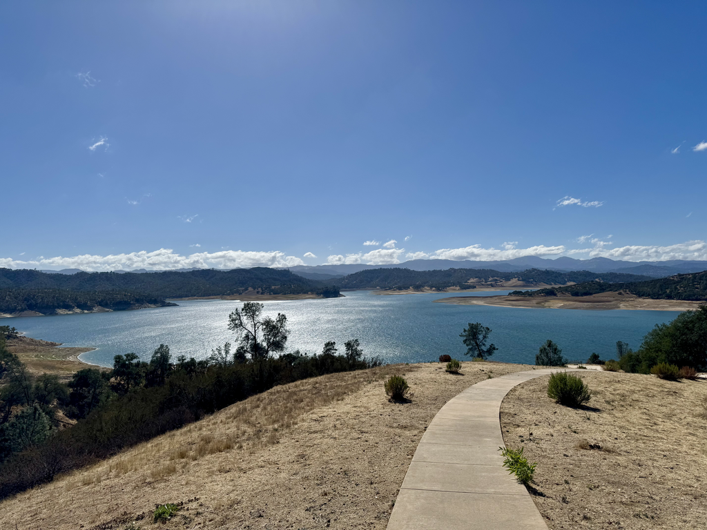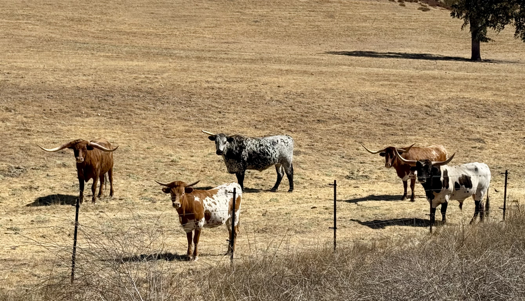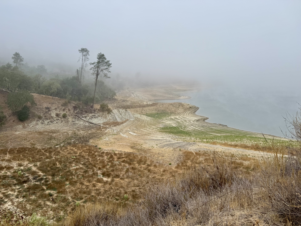 However, all very striking, we are in the midst of three days away from the coast because of the damage to the PCH around Big Sur, and it's just an entirely different state. Dry, sandy hills as far as the eye can see. The climbs at the end took us up to the lakes, which gave us beautiful views below. In the last few miles into the camp, I saw a bald eagle, a pronghorn antelope, some longhorn cattle (is that legal outside of Texas?), and a big (as the palm of my hand) fuzzy tarantula crawling onto the road five feet from my sandled, sockless feet. Needless to say no pics of any of this :-(.
