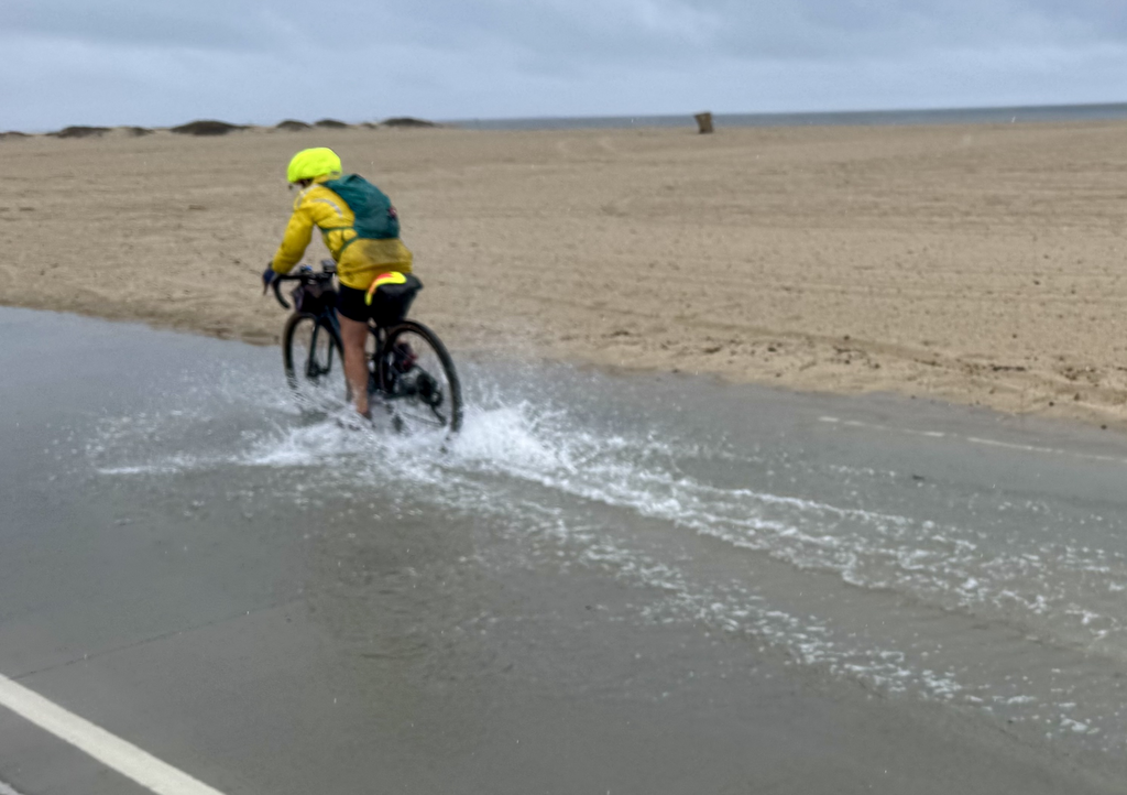 Pam and I rode together, as usual, and it was *hard*. We started out with gorgeous beach for the first 20 miles, stopped at a "Freedom Coffee" on the beach for an orange mocha, and everything was rosy. Then the wind turned and grew in strength, and it was all we could do to survive.