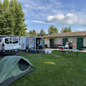 The way these tours work is that we have 12 riders and 2 leaders. The leaders alternate days riding "sweep" (following the last rider to ensure everyone is safe) and driving the van, which is pulling the trailer that has all our kitchen and other sundry supplies.
