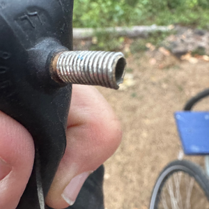 So I was screwed. There were 7-8 people behind me, but most people were touring on skinny road tires and tubes, like 28mm. It's possible that that would work in my 44mm tire for a brief time, the the volumetric difference is huge. Luckily, after 15 minutes or so Jeff Z came along w/ a 38mm tube and I installed that and made it to camp w/o issue.
