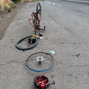 Luckily I was able to stop in one of the infrequent parking sections and so was shielded from the incessant traffic. I had everything I needed to get going again (multiple pumps, multiple patch kits, and one extra tube), so I waved her on and starting changing the tire. It was a rear wheel, which can be a pain, but was actually much easier on my bike because of the geometry of the dropouts (which hold the axel), and having a clean carbon-fiber belt rather than a greasy chain and rear derailleur. So all was good, except that......