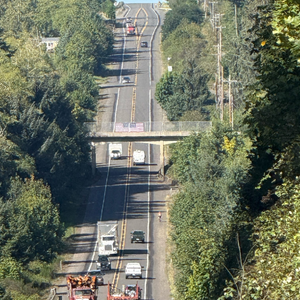 The others caught up and Pam, Anne, Jim and I ended up riding together, going through some crazy rollers through residential areas. Anne and I were talking and without realizing it we started riding pretty hard. I was having a good day and rode the rollers until I was out in front of the others for a while, but Anne is probably the strongest climber in the group and soon caught up. The rollers turned into bigger climbs, then into the old I-5, which seemed a bit sketchy, and eventually we were 52 miles into the ride and were at I-5.... so we got on the interstate.