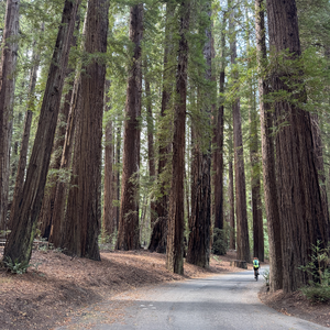 After the climbs, we passed gorgeous beach, and ended up riding the "Redwood Trail", as one sign had it. Basically miles of redwoods completely surrounding us on all sizes. More than one of us compared it to being in a European cathedral, where the environment demands silence, and gives peace