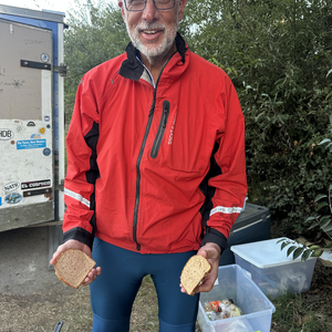 It was fun, though. I started riding with/ Doug (owned a company decimated by tariffs and newly retired) and Molly (worked for Bike Friday for a few years), two folk who met on an earlier ride and got so close that their families know each other. Both are exceedingly strong riders. We were soon joined by Jim, recently retired from a company that builds facilities for high-tech needs, recently work in San Francisco for a relatively large amount of time.
